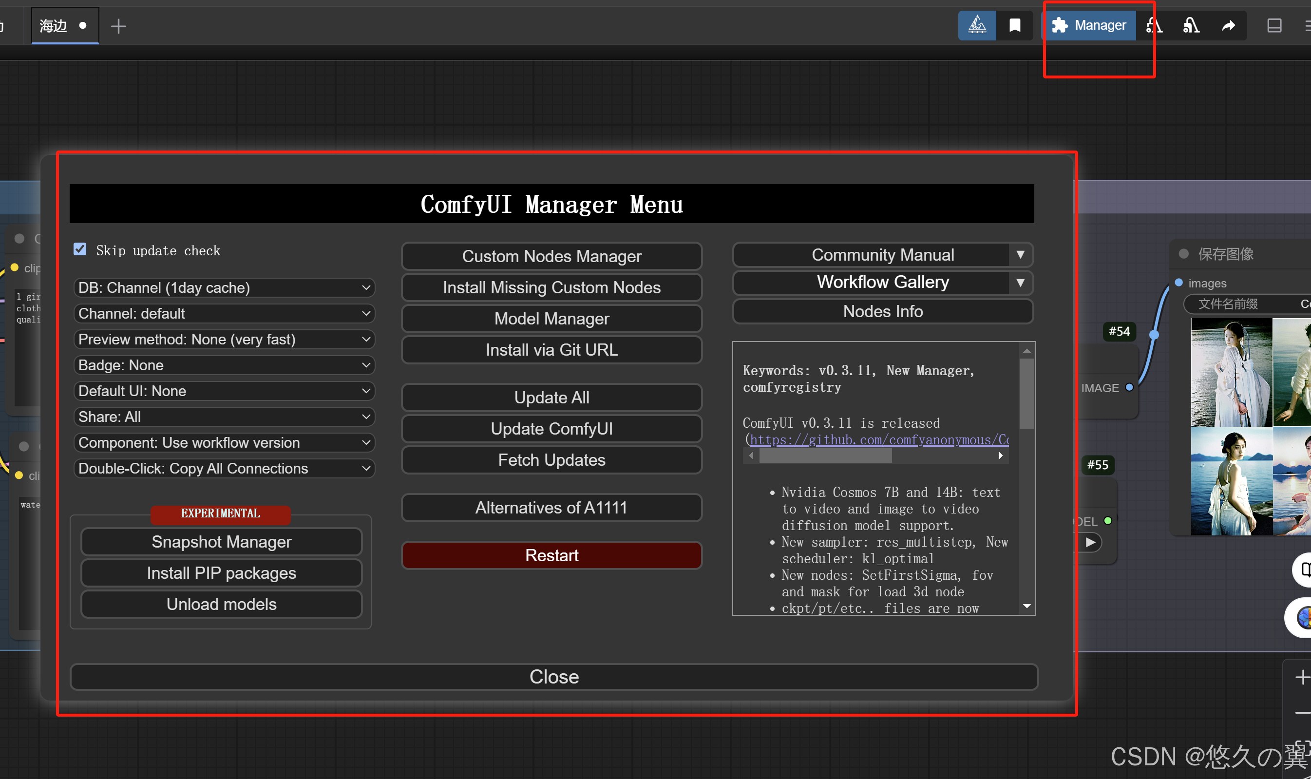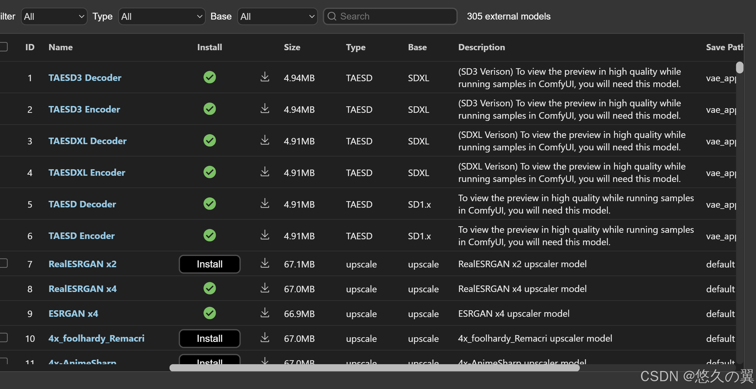 使用comfyUI的Model Manager界面下载模型(不推荐,很多下载下来的模型存在问题,无法使用)