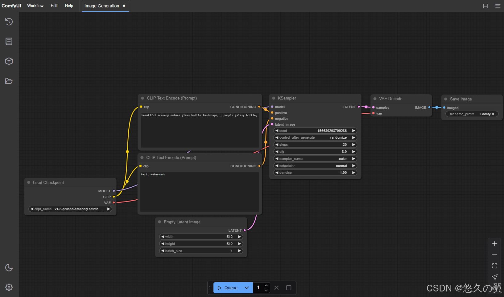 上诉步骤执行完毕即可开始使用我们的ComfyUI进行基础的图文AI处理了
