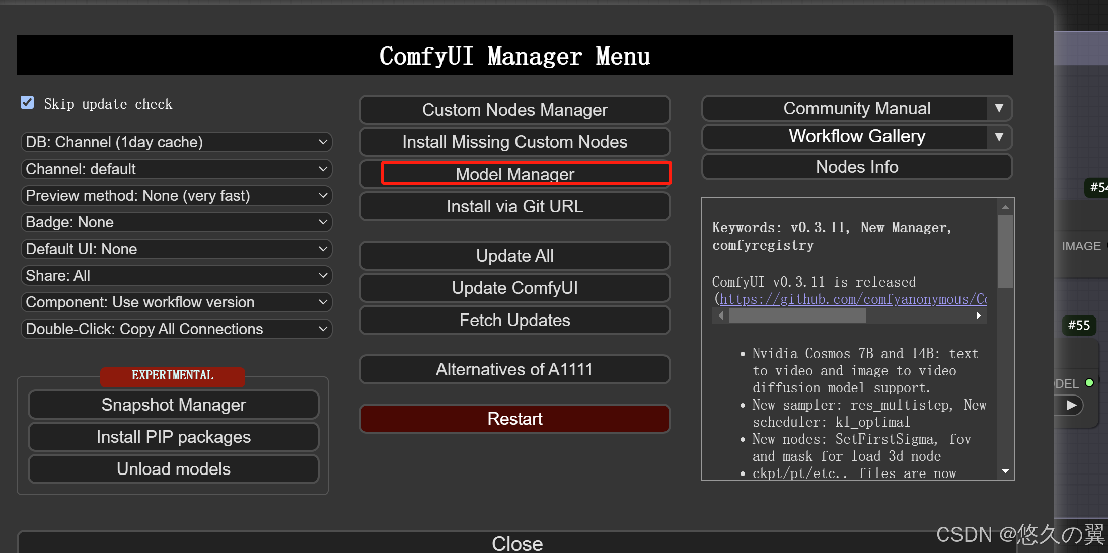 使用comfyUI的Model Manager界面下载模型(不推荐,很多下载下来的模型存在问题,无法使用)